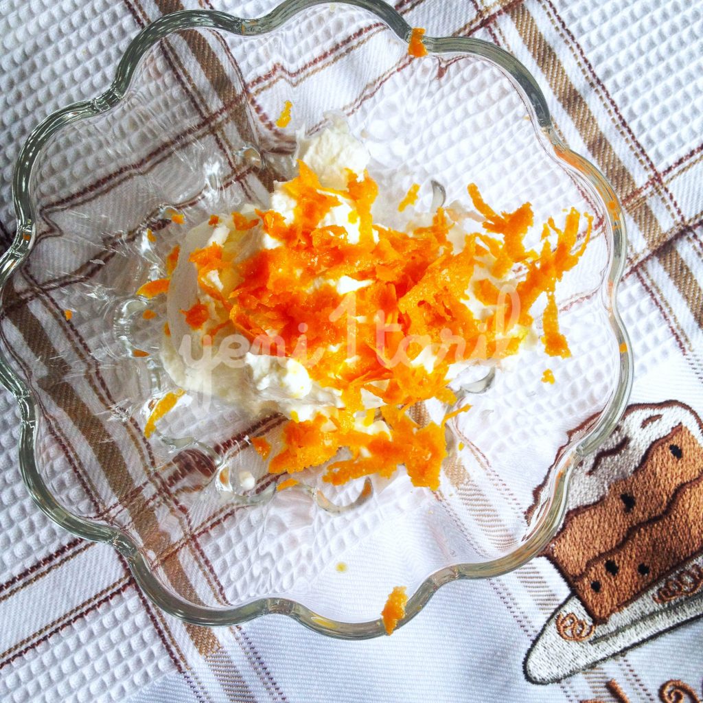 ?ki adet küçük bir kase haz?rlayal?m. Birincisine peynirimizi, portakal kabu?u rendemizi ve 1 yemek ka???? ?ekerimizi döküp, homojen bir k?vam elde edene kadar kar??t?ral?m.