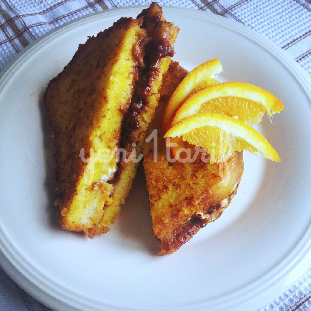 Islatt???m?z ekme?imizi düz bir yüzeye koyup, üzerine peynir kar???m?ndan bolca koyal?m. Daha sonra ise üzerine bol bol çikolata rendesinden ekleyelim. Tekrar ayn? yöntem ile bir dilim daha ekmek ?slat?p, sandviç ?eklini alacak ?ekilde üzerine kapatal?m.