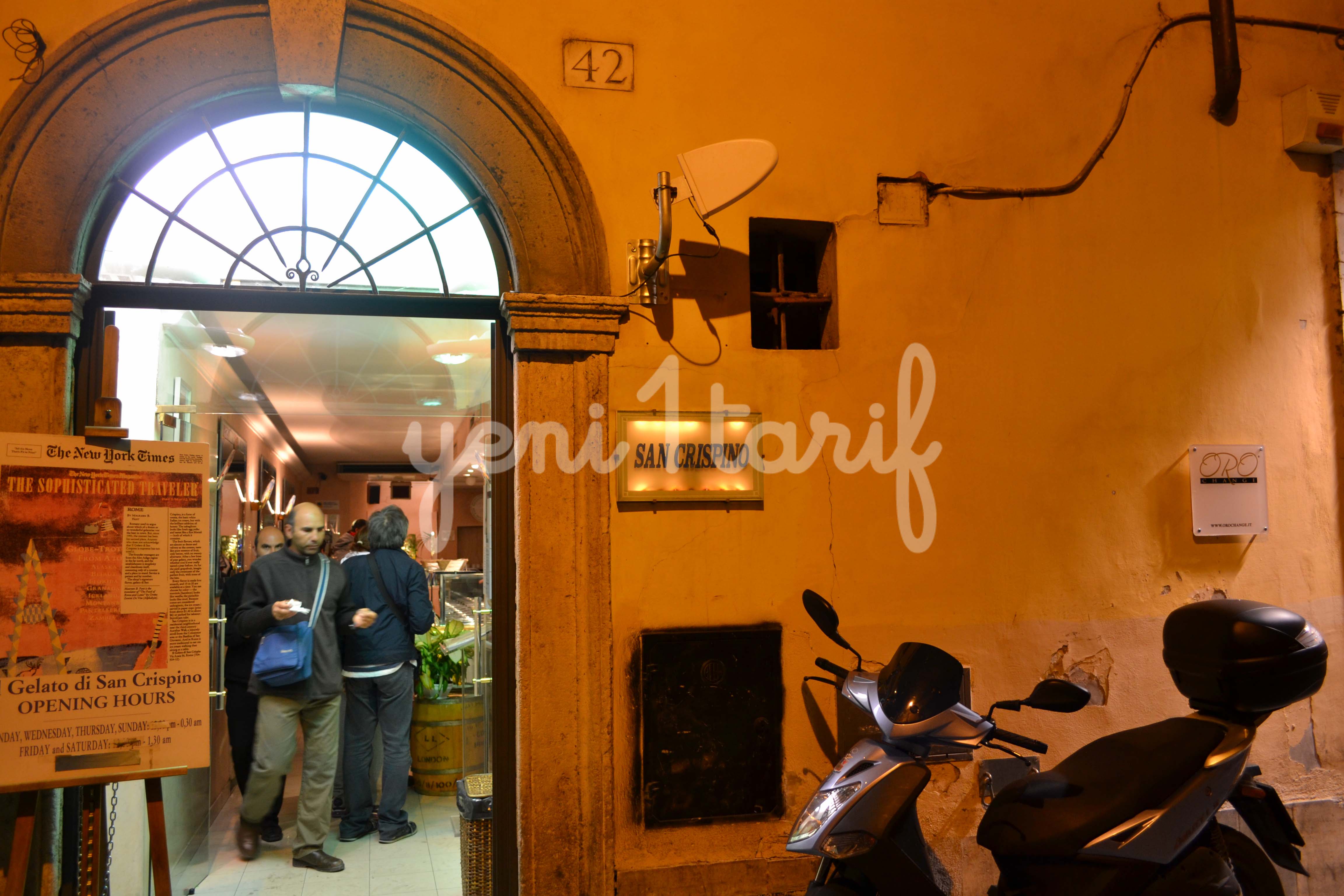 ?lk dikkatimi çeken külah olmamas?yd?; tabii ki merak edip sordum ve dondurman?n tad?n? bast?racak kadar tatl? oldu?u için kullanmad?klar?n? sadece kupta servis edebileceklerini söylediler. Benim için hiçbir sak?ncas? yoktu; ve neyi tavsiye edeceklerini sorup sat?c?lar? dinledim. Bir kase dolusu f?st?kl? dondurma ald?m. Duvarlar? gazete kupürleri, ünlü dergilerin kö?e yaz?lar? ile doluydu; hepsinin ortak görü?ü e?er Roma’da dondurmaya Michelin y?ld?z? verilecek olsa, üç y?ld?z? birden hak eden tabii San Crispino olmas?yd?. Çokta hakl?yd?lar, tam sevdi?im gibi sütlü kaymak k?vam?nda, mis gibi taze kokusu bizi bizden ald?. Tüm dükkanlar?n?n adreslerini bulabilece?iniz www.ilgelatodisancrispino.it adresini ziyaret etmenizde fayda var.