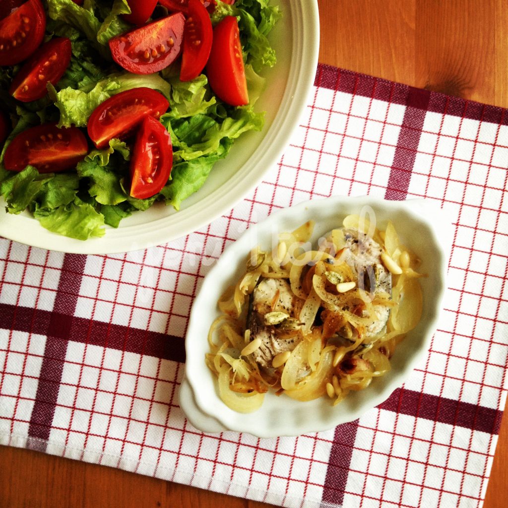 Ay ay do?rad???m?z so?an ve sar?msaklar?m?z?, az zeytinya??nda ve k?s?k ate?te pi?meye b?rakal?m. Sanki karamelize ediyor gibi, çok k?s?k ate?te olmal?lar. Kendi sular?n? sal?p, çektikten sonra renk almadan iyice pi?irelim. Ben tuzun bu k?sm?n? bu noktada ilave ediyorum. Geri kalan? ise bal?klar? tavaya dizdi?imizde sadece bal?klar?n üzerine serpiyorum.