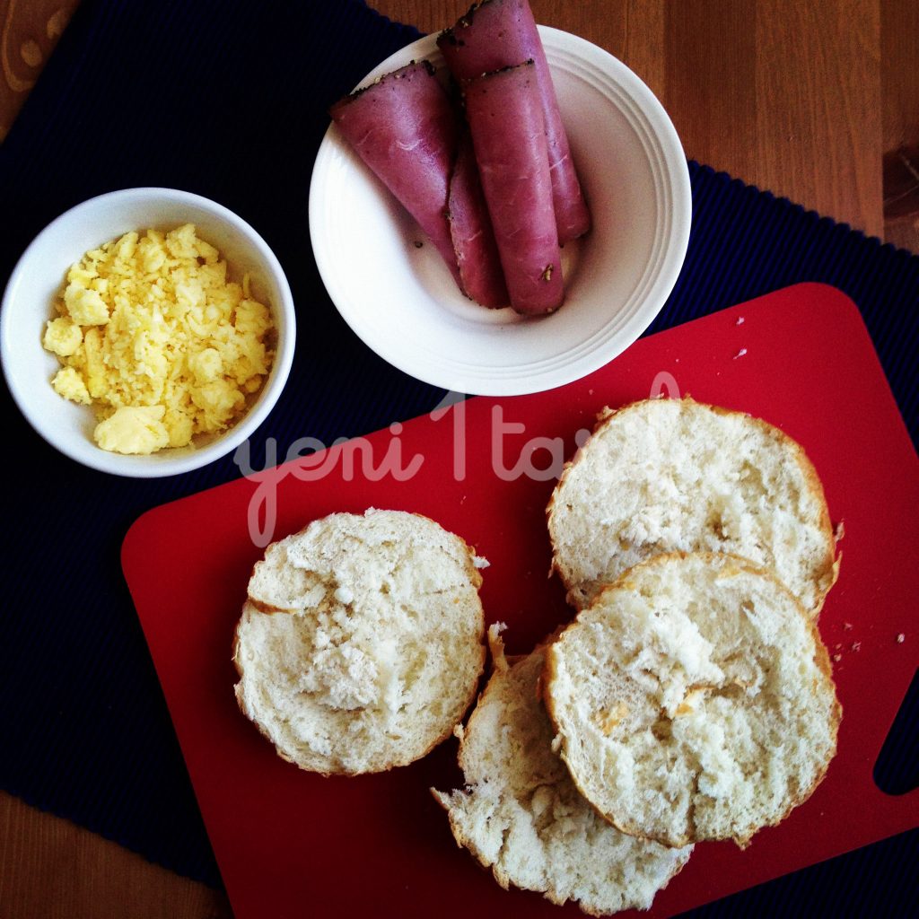 Bu esnada gene evde bulunan, belki biraz olsun bayatlamaya yüz tutmu? ekmek parçalar?m?z? ?s?tal?m. Bizim evde top ekmekler vard? ki bunlar ile sandviç yapmaya bay?l?yorum. Ekmek k?zartma makinas?nda 1 dakikadan daha az süre tutmam yeterli oldu; siz de lütfen kendi zevkinize göre k?zart?n.